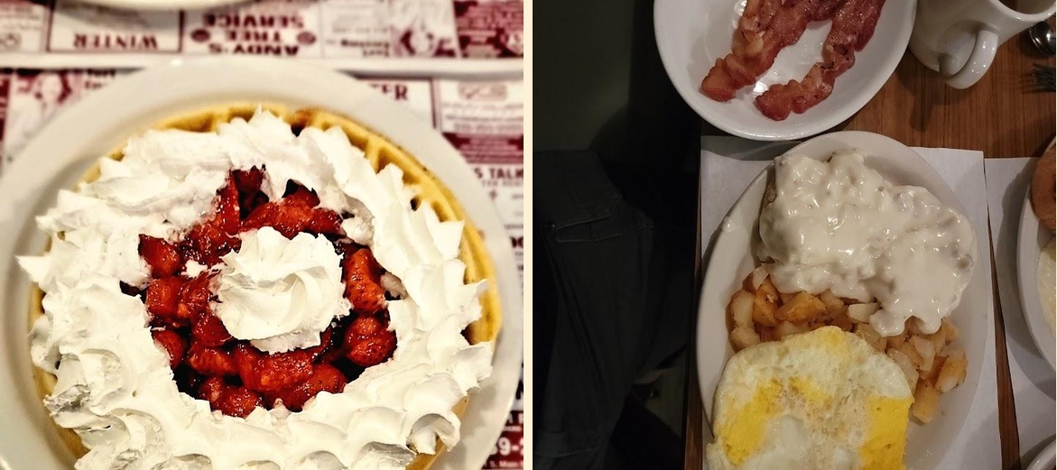 The menu remains diverse and focused on comfort food. Don't miss the homemade bread and biscuits and gravy. Both items garner rave reviews. The farmers omelet is popular among regulars, bursting with fresh ingredients and flavor.
