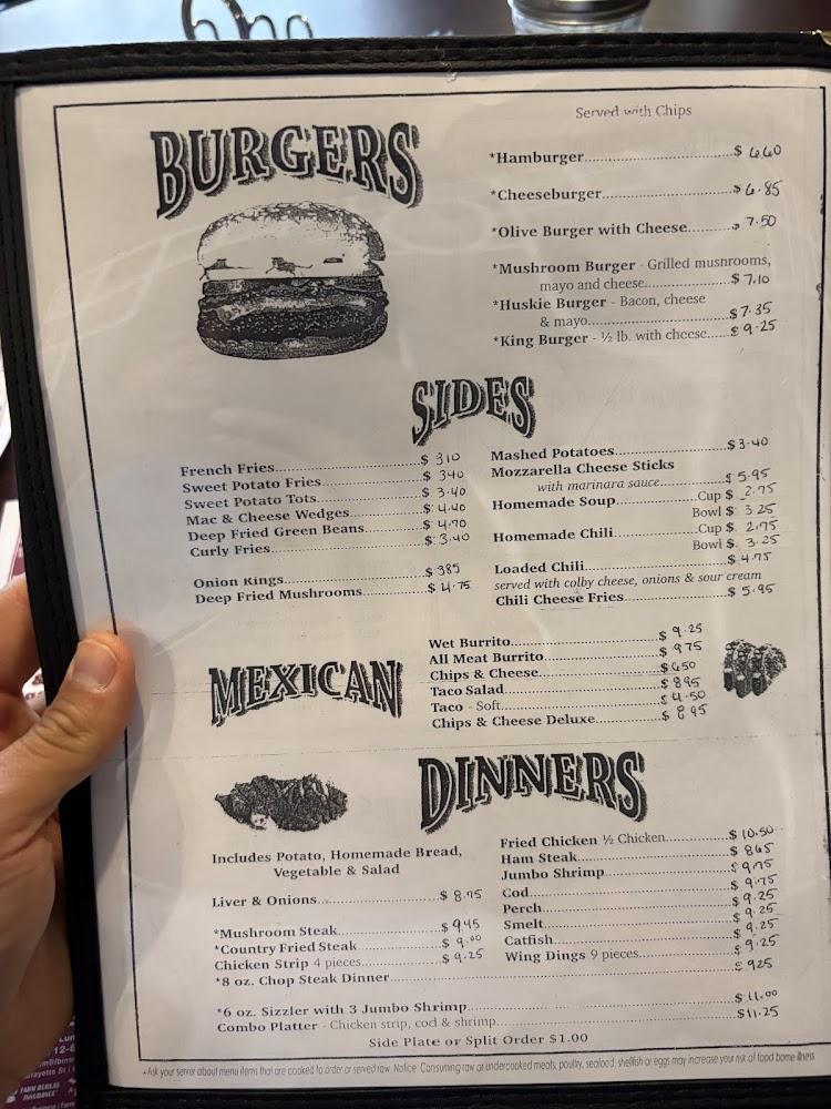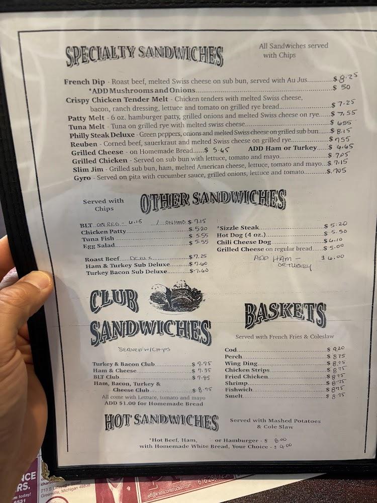 Lunch choices feature a mix of handcrafted sandwiches, salads, and burgers. Classic American fare satisfies various palates. Dinner options like fried chicken and perch showcase traditional meals executed simply yet well.