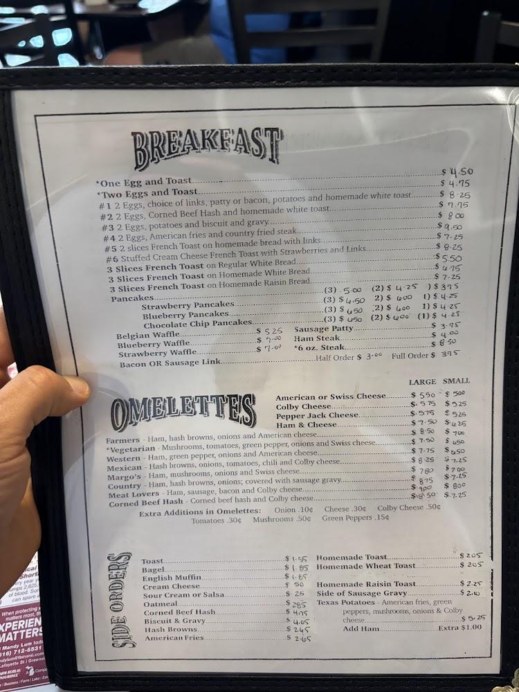 Margo's Family Restaurant offers a well-rounded menu featuring breakfast, lunch, and dinner options. Breakfast includes omelets, pancakes, and hearty farmers' meals. The standout is the biscuits and gravy, a local favorite, perfect for starting the day right.